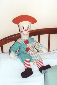 Here is the original Clarey Clown Doll. He is pictured here sitting next to